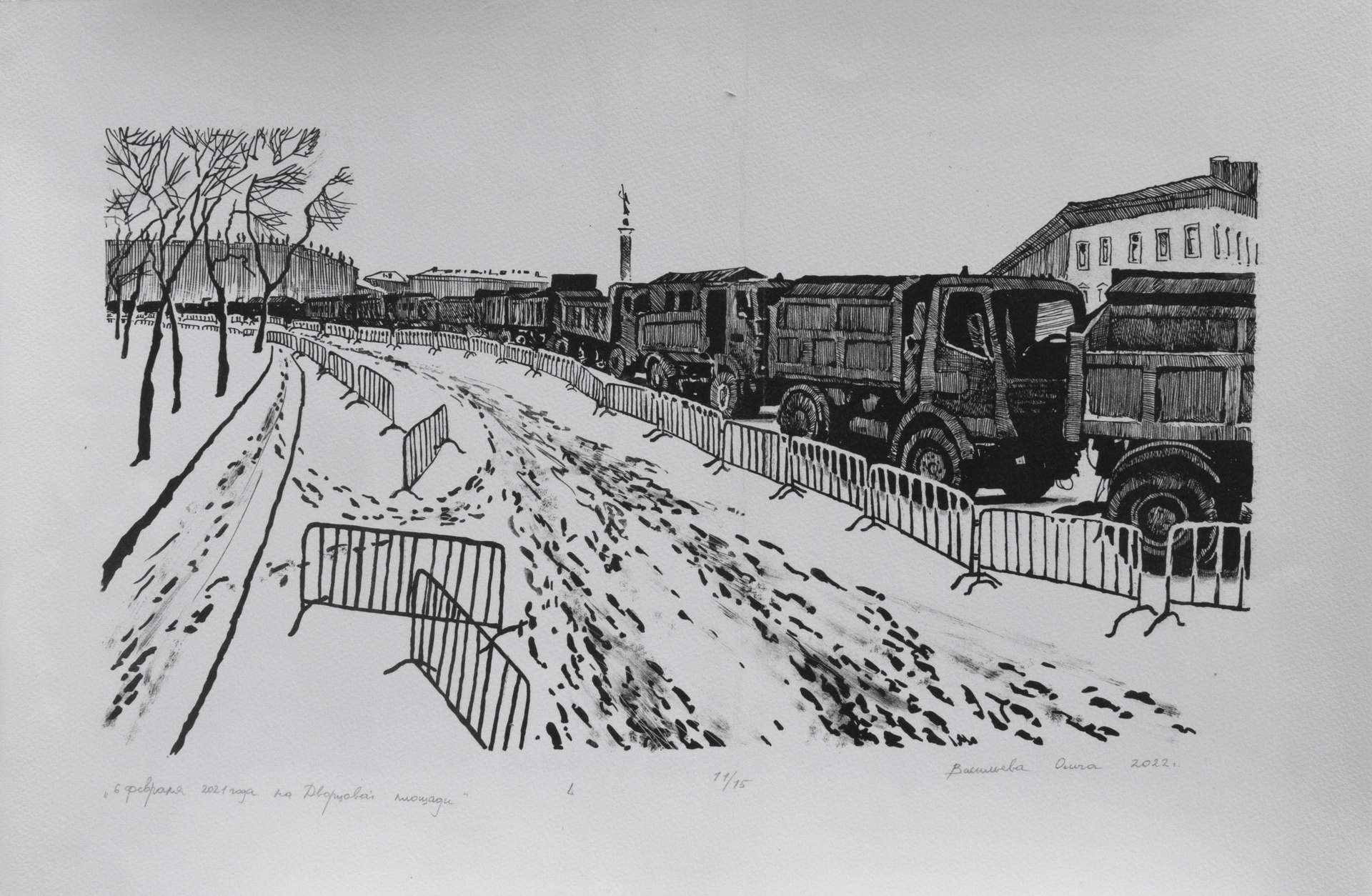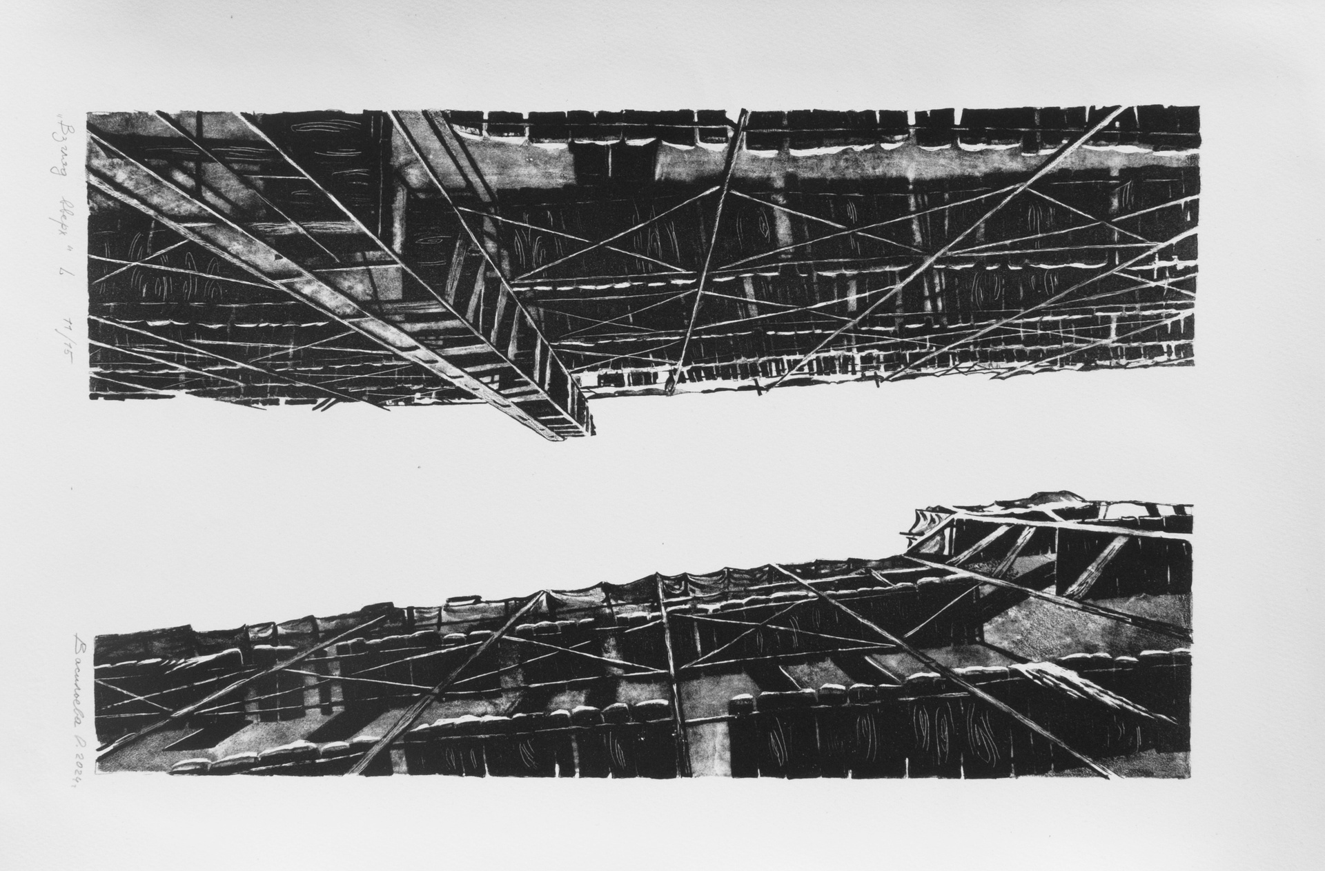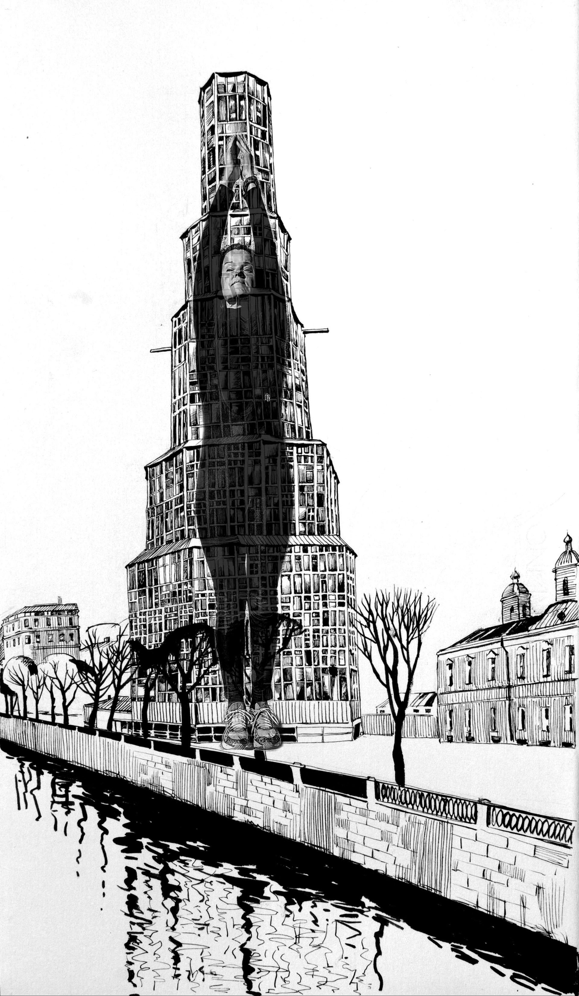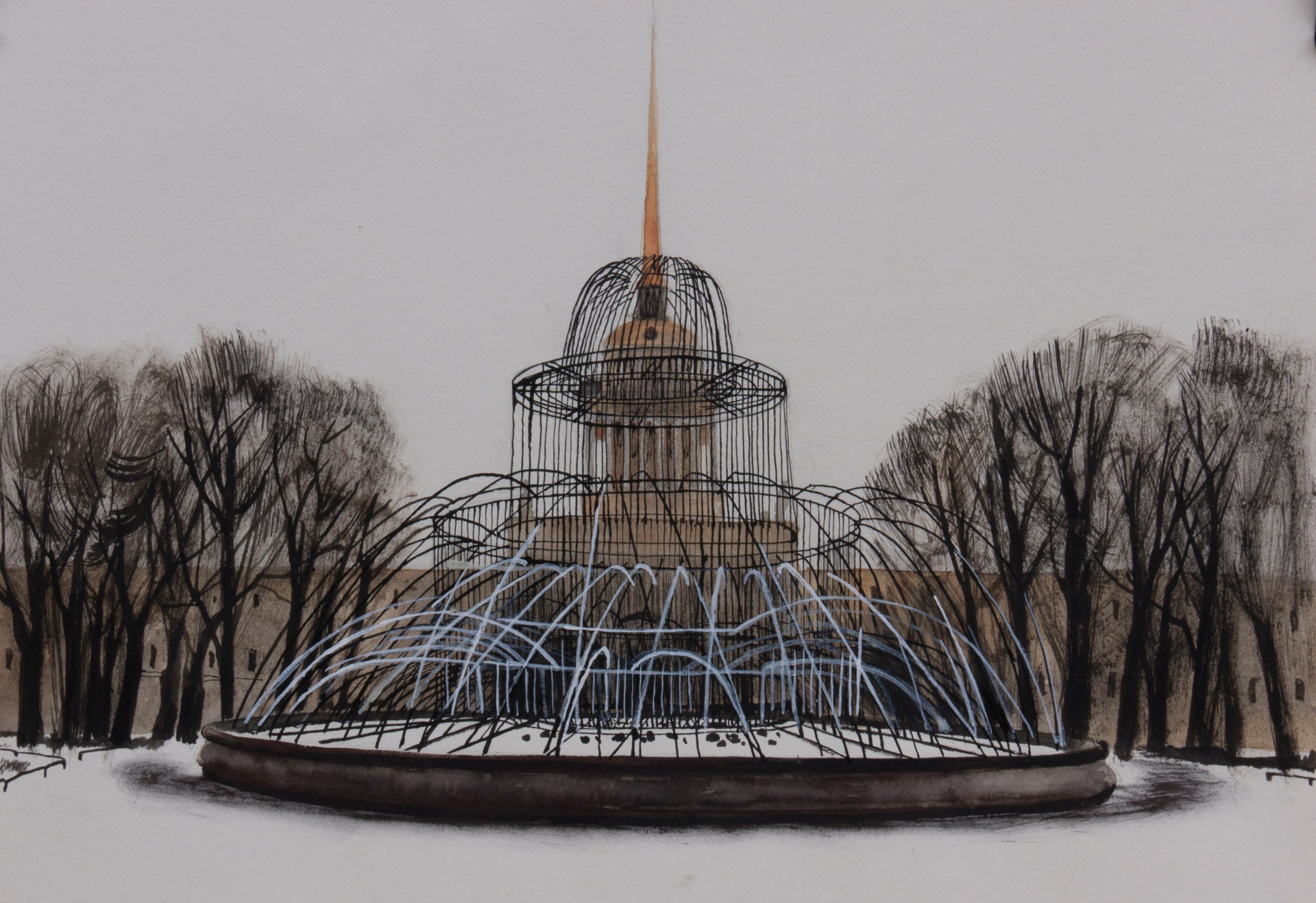 В этой серии возможность тиражирования в литографии использована не для печати одинаковых изображений, а как прием для передачи изменений объекта. На одной печатной форме была нарисована колокольня Никольского собора, а на другой — строительные леса, возведённые для реставрации колокольни. Печать происходила с последовательным уничтожением рисунка на печатной форме. Каждый оттиск фиксирует одно из состояний формы. Наложение двух рисунков дало возможность показать появление одного объекта и исчезновение другого.